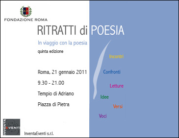 A Roma, il 21 gennaio 2011, presso il Tempio di Adriano in Piazza di Pietra, ritorna l’appuntamento con la poesia italiana e straniera promosso dalla Fondazione Roma